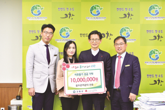 (주)골프존카운티 선운(대표 서상현)이 지난달 30일 ‘희망2019나눔 캠페인’에 동참하며 성금 1000만원을 고창군에 기탁했다.