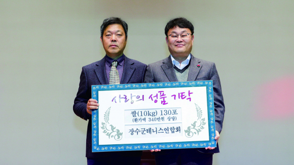 지난달 30일 장수군테니스연합회(회장 이성철)가 연말연시 어려운 이웃들을 위해 써달라며 쌀(10kg) 130포(시가 340만원)를 기탁했다.