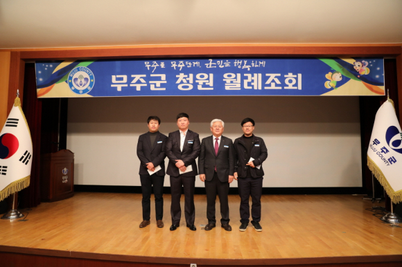 지난 3일 무주군 전통문화의 집 대강당에서는 황인홍 군수를 비롯한 공무원 등 200여 명이 참석한 가운데 12월 월례조회가 개최됐다. 이 자리에서 황 군수는 “이웃들을 생각하며 따뜻하게 한 해를 마무리했으면 좋겠다”며 “업무도 누락되는 것 없이 즐거운 마음으로 잘 마무리해줄 것”을 당부했다. 이와 함께 ▲폭설대비와 함께 상수도 및 농업시설물 관리 등 겨울철 기상상황에 맞는 대책추진에 만전을 기하고 ▲화재예방과 ▲이웃돕기 ▲공직기강 확립에 더욱 주의를 기울여줄 것을 강조했으며 ▲내년도 원활한 군정 업무추진을 위해 예산확보부터 제대로 될 수 있도록 의회 예산안 설명에 보다 심혈을 기울여줄 것과 ▲행정사무감사 등을 통해 지적된 내용이나 사업들에 대해서는 정확한 연찬을 통해 개선이 이뤄질 수 있도록 해줄 것 등을 덧붙였다. 한편 2018년 정부혁신 추진 우수사례 경진대회 우수자에 대한 시상식에서는 무주군 보건의료원 의료지원과 박효진 주무관이 ‘산모·신생아 건강관리서비스 확대 지원’으로 대상을 받았으며 농업정책과 윤수진 팀장이 ‘공공비축 미곡매입 도우미 지원’으로 문화관광과 김다연 주무관은 ‘행정구역은 달라도 이웃사촌-산골주민 찾아가는 행복버스’로 금상을 받았다. 은상은 ‘노블리스 오블리 무주운동 활성화’를 제안한 사회복지과 박선영 주무관, ‘장애인 전동보장구 고속충전기 설치사업’을 제안한 사회복지과 이수민 주무관, ‘군민에게 한걸음 다가가는 보건의료사업 홍보’를 제안한 보건행정과 유성현 팀장이 수상했다. 동상은 보건행정과 이경효 주무관(식품배달영업소 연계 금연환경 조성 홍보), 산업경제과 배지연 주무관(사회·경제공동체 육성사업), 농업정책과 김재원 팀장(농업인 월급제 지원사업), 보건행정과 최승미 주무관(자살위험 없는 안전한 사회 구현), 시설사업소 손주앙 주무관(공공도사관-작은도서관 상호협력망 시스템 운영)이 수상했다. 무주군은 군민이 체감할 수 있는 정부혁신 우수사례를 발굴한다는 취지에서 공무원들을 대상으로 지난달 9일 정부혁신 실행계획 추진성과 보고 및 우수사례 경진대회를 개최했으며 이 자리에서 총 11건의 우수사례를 발굴했다. 수상작들은 행정안전부 주관 ‘정부혁신 우수사례 경진대회’에 대표사례로 제출돼 관심이 모아지고 있다. 2019 신규시책 발굴 우수자 포상에서는 ‘무주군 스포츠파크 조성사업’을 제안한 기획실 이학수 주무관이 최우수상을, 환경위생과 김권진 주무관(음식물쓰레기 처리를 위한 플라즈마 설비 설치)이 우수상, 안전재난과 김종일 주무관(전간도로 자주식 주차타워 조성)이 장려상을 받았다. |
