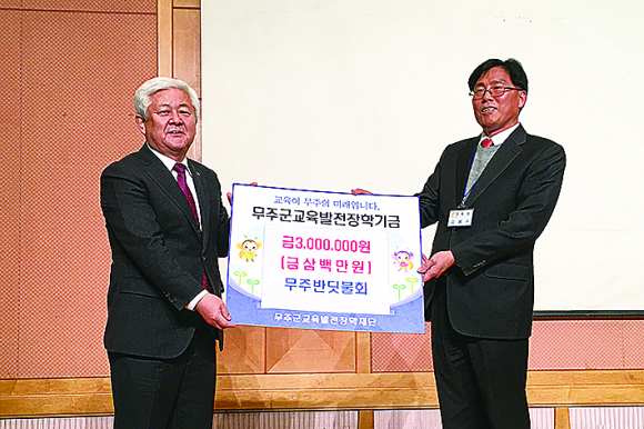 지난 3일 전북에 거주하는 출향인들로 구성된 무주반딧불회(회장 김봉구)가 르윈호텔에서 송년의 밤을 갖고 무주군에 300만원을 장학금으로 기탁했다.
