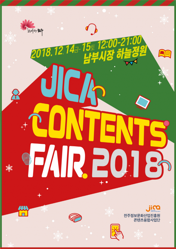 | 전주정보문화산업진흥원이 전주의 역사와 문화, 인물 등을 활용해 만든 지역특화 콘텐츠를 시민들에게 선보인다. 전주정보문화산업진흥원(원장 서문산성, 이하 진흥원)은 14일과 15일 이틀간 전주남부시장 하늘정원에서 2018년 한 해 동안 수행한 지역특화형 콘텐츠 개발지원사업의 성과물을 전시하는 ‘JICA CONTENTS FAIR 2018’을 개최한다.