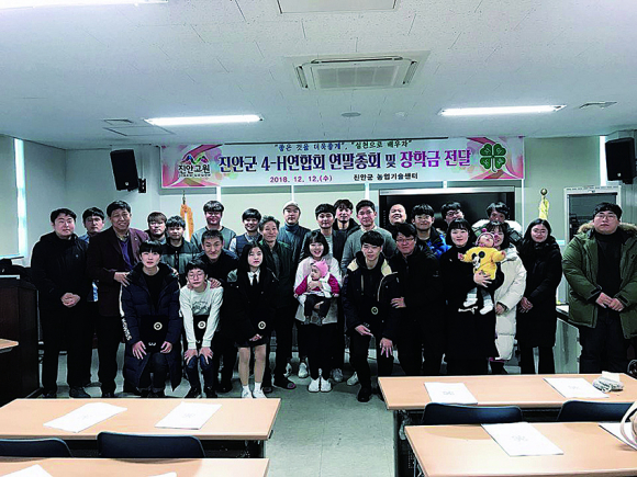 지난 12일 진안군 4-H연합회(회장 이종진)가 농업기술센터에서 지역 내 학교 학생 5명에게 20만원씩 총