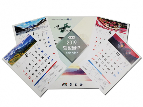 | 진안군(군수 이항로)이 주요 군정과 영농정보를 담은 2019년 행정달력을 제작 배포한다. 행정달력에는 마이산(명승 제12호), 용담호, 구봉산, 백운동계곡, 편백숲, 메타쉐쿼이아 길, 홍삼스파, 홍삼축제 등 진안의 주요 명소가 수록되어 천혜의 고장 진안고원의 수려한 자연경관을 감상 할 수 있다. 또한, 군민들이 놓치지 말아야 할 시기별 사업 신청기간, 각종 세금 납부기한, 주요 행사일정 등 주요 행정정보를 월별로 안내하고 있다. 특히, 식량작물, 과수·원예작물, 축산·특용작물, 농작업 등 농가에서 월별로 꼭 알아야할 영농정보가 수록되어 있다. 이항로 진안군수는 “행정달력에 매월 군민이 꼭 알아야 할 군정과 영농정보, 진안고원의 아름다운 명소 사진을 알차게 담았다”면서 “군민들에게 많은 도움이 되길 바란다.”고 말했다. |