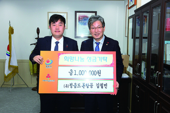 (유)정읍드론항공(대표 김철민)은 17일 정읍시청을 방문해 주변의 소외된 이웃들을 위해 희망나눔 성금 100만원을 기탁했다.