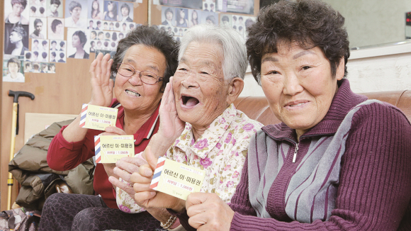 | 노인 인구가 많아 생활밀착형 복지서비스를 확대하고 있다. 사진은 ‘어르신 이·미용권’을 들고 있는 어르신들 모습. |