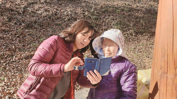 | 장수군은 자원봉사와 재능나눔 문화를 활성화할 계획이다. 사진은 ‘영상코디’가 어르신께 스마트폰 교육을 하고 있는 모습. |