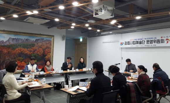 | 정읍시(시장 유진섭)는 지난 18일 정읍시립미술관 1층 교육실에서 김인태 부시장과 신규 위촉된 시립예술단 운영위원 11명이 참석한 가운데 정읍시립예술단 운영위원회를 개최했다. 이날 운영위원회는 2019년도 시립예술단 운영 기본계획 수립(이하 기본계획)과 예술단 운영 발전방안에 대해 예술인 각계각층의 의견수렴을 위해 마련됐다. 이날 회의는 2019년 기본계획에 대한 소개, 예술단 운영 발전방안, 건의 등의 순으로 진행됐으며 예술단 운영 전반에 대해 열띤 토론을 통해 예술단 결원인원 충원과 예술단 지도부 직위 개선, 합창단 연습실 이전 확보, 정읍사예술회관 공연장 시설보수 등 다양한 의견이 제시됐다. 시는 이번에 수렴된 의견을 세밀한 검토과정을 거쳐 예술단 종합발전 대책을 강구할 방침으로 향후 위원회를 중심으로 추진상황을 점검하고 그 성과를 예술인과 공유하고 소통해 나갈 계획이다.