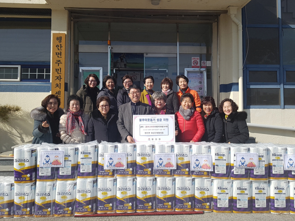 | 행안면 여성단체협의회(회장 강영재)는 25일 면사무소를 방문하여 설 명절을 맞아 소외계층에 전달해 달라며 30롤 화장지 34개(65만원 상당)를 기탁했다. 행안면은 이날 기탁된 성품을 관내 저소득층 34세대를 선정하여 마을담당직원이 직접 방문하여 전달할 계획이다. 강영재 행안면 여성단체협의회장은 “설 명절을 앞두고 주위 어려운 이웃들이 소외되지 않고 따뜻한 설 명절을 보내는 데 조금이나마 도움이 되길 바란다.”며, “앞으로도 불우이웃돕기 등 다양한 봉사활동을 통해 지역발전에 앞장서겠다.”고 말했다. 이영흔 행안면장은 “어려운 이웃들에게 춥고 힘든 겨울이 되고 있을텐데 주위 어려운 이웃들에게 따뜻한 온정의 손길이 계속해서 이어질 수 있도록 나눔 문화 확산과 복지소외계층 발굴에 최선의 노력을 다하겠다.”고 말했다. |