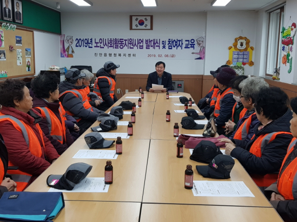 | 진안읍(읍장 박홍영)은 지난 8일 2019년 노인사회활동지원 사업 참여 어르신 14명을 대상으로 발대식과 안전교육을 실시했다. 행사는 사업의 취지와 운영방법, 어르신들이 유의해야 할 사항과 안전교육, 복무관리에 관한 안내로 진행됐다. 노인사회활동지원 사업은 노인들의 사회참여 확대와 저소득 노인의 생활안정을 위하여 실시하는 사업으로 2월부터 10월까지 추진된다. 1일 3시간, 주 3일 근무하며 1인당 월 27만원의 급여를 받는다. 참여 어르신들은 진안읍내 도로변 쓰레기, 공공시설 정화활동 및 쓰레기 분리작업 등 활동을 하며 깨끗하고 살기 좋은 진안읍 만들기에 앞장 설 계획이다. 박홍영 진안읍장은 “참여 어르신들의 건강과 안전이 최우선이며, 지역 어르신들의 생활안정과 삶의 질 향상을 위해 노인 일자리 창출에 더욱 노력하겠다”고 말했다. |