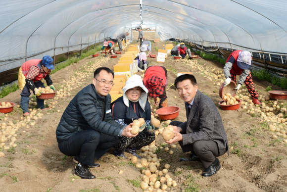 | 한겨울 추위 속에서 사랑과 정성으로 재배한 춘향골 햇감자가 본격 출하되고 있다. <사진> 춘향골 햇감자는 주산지인 남원시 금지면 일대에서 지난달 말 첫 출하했다. 또 지난 12일에는 김의기씨 등 3개 농가에서 11톤을 수확해 농산물산지유통센터(APC센터)를 통해 선별, 소비자들에게 인기리에 공급됐다. 가격은 20kg 박스당 4만원 선으로 지난해와 비슷한 수준이다. 가을에 수확한 저장감자에 비해서는 2~3배 높은 가격이다. 남원 햇감자는 올해 240농가가 95ha를 재배해 50억 원의 조수익을 올릴 수 있을 것으로 기대하고 있다. 또, 4월 말까지 감자 수확을 마무리하고 후속 작물로 수박이나 멜론을 재배할 계획이다. 조남이 금지면장은 “올해 감자 출하를 시작으로 원예작물뿐만 아니라 과수, 축산 등 전국 어디에서도 인정받는 농·축산물 생산을 위해 온 힘을 다하겠다”고 말했다. |