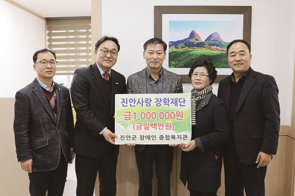 진안군 장애인종합복지관(관장 배인재)이 19일 진안사랑장학재단에 100만원의 장학금을 전달했다. 이날 전달된 장학금은 장애인 활동지원사업으로 얻은 수익금 중 일부를 기탁한 것이다. 배인재 관장은 “우리 진안의 꿈나무들이 꿈을 향해 한 발 더 나아갈 수 있는 발판이 돼주고 싶다. 그리고 올해는 우리 장애인들이 활기차게 살아가는 한 해가 됐으면 좋겠다”고 전했다.