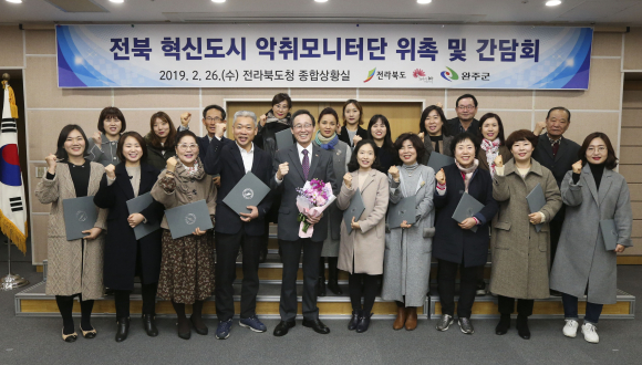 | 혁신도시에서 발생하는 악취를 실시간 감시하고, 확산정도를 확인하기 위해 지역주민으로 구성된 악취모니터 요원이 본격 활동한다. 전북도는 26일 혁신도시 악취 민원의 효율적인 대응을 위해 혁신도시에 거주하는 주민 20명(전주 10명, 완주 10명)을 위촉하고 모니터링 운영 교육 및 간담회를 실시했다. <사진> 위촉된 모니터 요원은 3월부터 내년 2월까지 악취 영향이 미치는 시기 및 강도 등에 대해 매일 실시간 악취 발생 상황을 스마트폰 밴드에 올리는 방식으로 활동하게 된다. 행사 당일 보건환경연구원에서는 악취 종류 및 강도 등에 대한 교육과 함께 개인별로 직접 후각으로 감지하는 시험도 병행해 모니터 요원의 전문성을 한층 강화시켰으며 하반기에도 별도로 교육을 진행할 방침이다. 아울러 도에서는 시·군과 함께 모니터 요원들이 악취가 발생한다는 사실을 확인하는 즉시 주변지역 일대 축산시설에 대해 악취 포집 등 집중적인 점검을 실시하여 위반사항 적발시 엄중조치하고 추가로 탈취제 및 미생물제를 살포하도록 하는 등 악취저감을 위한 활동을 적극 추진한다는 계획이다. 매월 모니터링 결과와 바람 등 기상자료를 비교해 야간 등 취약시간대 발생 유무, 악취 확산 정도 등을 분석하여 익월에 주요 지점별 악취발생시설에 대해 중점 점검도 병행할 방침이다. 이날 행사에 참석한 송하진 도지사는 “전북도의 성장 거점이라 할 수 있는 혁신도시의 지속적인 발전과 거주하는 주민들의 건강과 삶의 질을 높이기 위해서는 악취 문제의 뿌리를 뽑아야한다”며 “올해 시·군과 협력해 지역주민들의 불편을 최대한 줄여 나가도록 적극 대처해 나갈 것”이라고 강력한 의지를 표명했다. 한편 전북도는 올해 혁신도시 악취저감을 위해 예년과 달리 도 관련 실·국과 협업해 축산시설 밀폐화·탈취탑 설치 및 ICT 축산악취 모니터링시스템 구축 등 4개 분야 16개 사업에 202억 원을 투자해 악취발생을 최소화한다는 계획이다. |