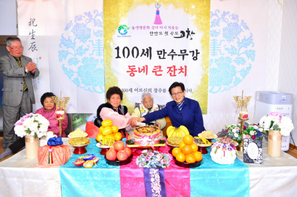 현재 고창 지역 내에는 100세 어르신 14분이 생존해 있다. 고창군은 앞으로도 100세(천수, 상수)를 하늘이 내려준 나이라는 큰 의미를 되살려 마을 잔치를 확대할 계획이다. 고창군 경로복지팀 최선임 팀장은 “마을 주민들이 자발적으로 주도하고 나눔과 봉사, 재능기부가 어우러져 인심과 정이 살아있는 고창이 되도록 최선을 다하겠다”고 밝혔다. |
