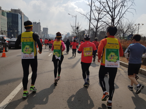 | 부안마라톤클럽(회장 이현주) 회원 30여 명은 최근 서울특별시에서 개최된 2019 서울국제마라톤에 참가해 다음달 28일 개최되는 부안마실참뽕마라톤대회와 5월 4~6일 개최되는 제7회 부안마실축제를 홍보했다. 서울국제마라톤은 참가자만 4만여 명에 달하고 거리에 응원 나온 시민 및 대회 관계자 등을 포함하면 10만여 명이 넘는 명실 공히 우리나라 최대 마라톤대회이다. 이번 대회에서 부안마라톤클럽 회원들은 참가자들에게 잘 보이도록 등 부위에 홍보배너를 부착하고 42.195㎞의 서울 시내를 발로 뛰면서 부안마실축제 등을 널리 알렸다.