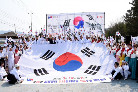 이날 행사는 독립선언문 낭독, 감사패 증정, 유족 나라사랑배지 수여, 기념공연, 삼일절 노래 제창, 만세삼창 순으로 진행되었으며, 특히 금산면 모악예술단의 원평장터 만세운동 재현극과 어린이부터 마을주민까지 태극기를 들고 독립만세를 외쳤던 시가 재현 행진은 100년 전 그날의 뜨거운 함성이 느껴졌던 매우 의미 있는 행사였다. |