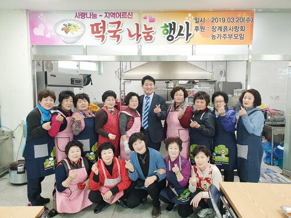장계면 농가주부모임 떡국 봉사김강선 기자 / |