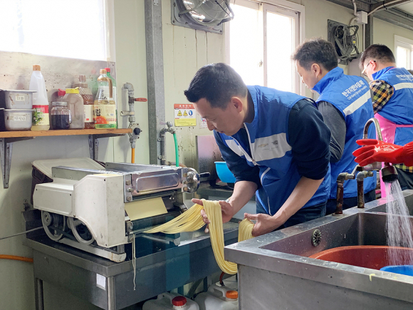 한국지엠 군산공장 퇴직자 자장면 봉사전라매일 기자 / |