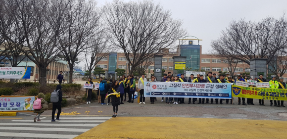 | 김제시(시장 박준배)는 26일 안전보안관, 안전재난과, 교통행정과 30여 명이 참석한 가운데 김제초등학교 앞에서 고질적 안전무시관행 근절 캠페인과 안전다짐대회를 실시했다. 이날 캠페인은 7대 안전무시관행을 근절하고 안전 불감증에 대한 주민인식과 행동 변화를 유도하여 시민의 안전의식 제고와 참여 분위기 조성을 위해 실시했다.
