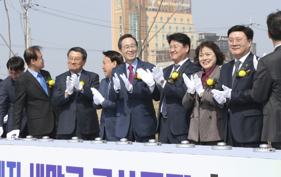 | ↑↑ 전북도에 따르면 (주)네모이엔지가 26일 군산 새만금산업단지에서 (주)네모이엔지 윤석진 대표를 비롯해 송하진 전북도지사, 김현숙 새만금개발청장, 강임준 군산시장, 강팔문 새만금개발공사 사장, 회사 임직원 및 관계자 등 100여명이 참석한 가운데 생산공장 착공식을 가졌다. |