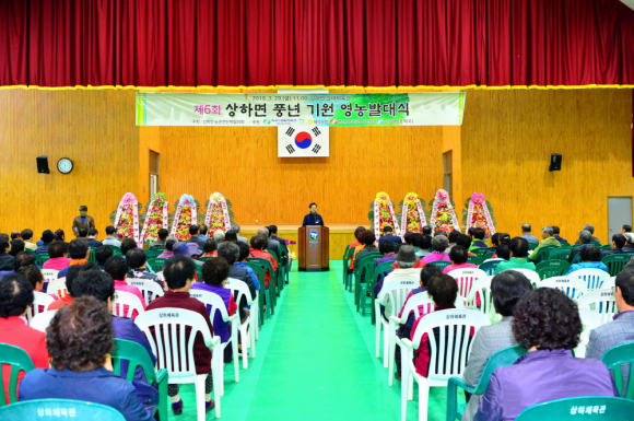 | 고창군 상하면 농관련단체협의회(회장 최종엽)가 29일 상하실내체육관에서 ‘풍년기원 영농 발대식’ 행사를 열었다.