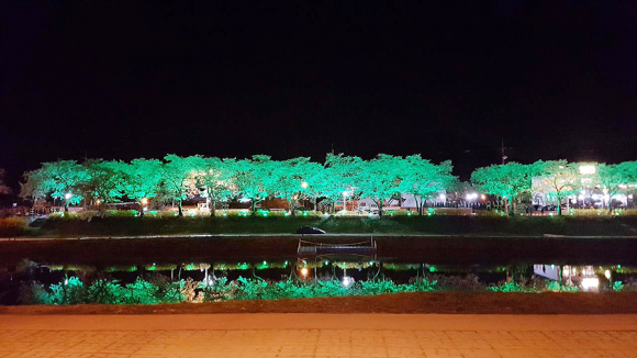 | 옥천골 벚꽃축제의 태동 옥천골 벚꽃축제는 98년도 순창군 83동창회에서 시작되어 85동창회로 이어져 20여년의 시간이 흘러 현재에는 순창군의 대표적인 축제로 인정받고 있다. 83년도에 졸업한 고등학교 동창생들로 구성된 모임에서 동창생중 서동준 회원이 전기, 조명 사업을 하면서 “경천변 벚꽃에 조명이 어우러지면 벚꽃의 화려함이 더 보기 좋을 것 같은 생각”에 소수의 등을 달면서 시작된 것이 동창회 전회원의 만장일치로 벚꽃축제위원회가 구성되어 13년 동안 축제를 진행했고, 이후 2014년도에 2년 후배인 85년도 동창생들이 벚꽃축제를 이어받아 옥천골 벚꽃축제 제전위원회를 구성해 군민들의 요구사항과 뜻이 “축제가 너무 짧다. 좀더 긴 축제가 필요하다”는 여론과 요구로 4일간의 벚꽃축제가 시작되었고 현재까지도 축제의 맥을 이어가고 있다. 2019년도부터는 동창회가 아닌 선후배들로 새롭게 구성된 ‘옥천골벚꽃축제제전위원’들이 오성용 회장과 나현주 제전위원장을 중심으로 축제를 준비해 군민들과 상춘객들을 맞이할 준비로 분주하게 움직이고 있다.