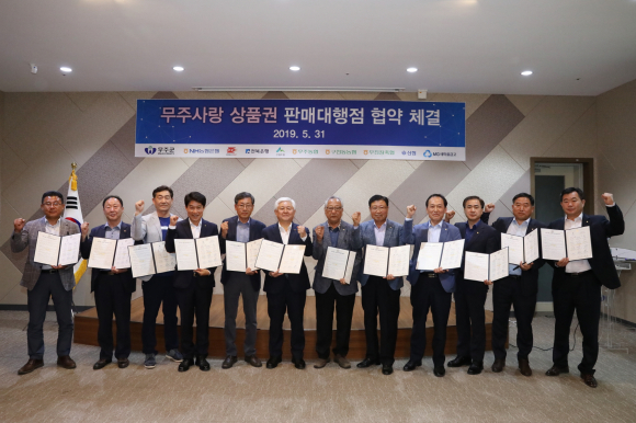 7월 초 무주사랑 상품권 발행·유통을 앞두고 있는 가운데 무주군이 지난달 31일 최북미술관 다목적영상실에서 지역 내 금융기관들과의 판매대행 업무협약을 체결했다. 이날 협약은 무주사랑상품권 판매를 촉진해 지역경제를 활성화시킨다는 목적으로 진행된 것으로, 황인홍 무주군수를 비롯한 NH농협은행과 전북은행, 지역농협, 신협, 새마을금고, 우체국 등 13개 금융기관 대표들이 함께했다. 참석자들은 무주군 금고인 NH농협은행에서 판매대행 업무를 총괄(인수 및 교부, 판매, 환전, 정산, 폐기)하고 나머지 판매 대행점(23곳)에서 상품권의 판매와 환전, 폐기 등을 진행하는 등의 역할을 확인하고 무주사랑 상품권의 효율적 운영·관리를 위해 공조해 나갈 것을 약속했다. 이 자리에서 황인홍 무주군수는 “이름뿐인 상품권이 아니라 소상공인들의 매출은 키우고, 가계에도 실질적인 보탬이 되도록 홍보와 활성화를 위한 시책 발굴에 최선을 다할 것”이라며 “금융기관에서도 무주사랑 상품권이 침체된 지역 경기를 회복시키는 마중물이 될 수 있도록 사용 분위기 확산과 판매에 보다 힘써 달라”고 말했다. 무주사랑 상품권은 지역자금의 역외유출을 방지하고 지역 내 소비를 촉진시키기 위해 발행하는 것으로, 7월 초 지역 내 24개 판매대행점(금융기관 각 지점)에서 판매를 시작하며 1차 발행규모는 5,000원권과 1만원권 14만장 총 10억 원이다. 무주군청 산업경제과 지역경제팀 허준철 팀장은 “사용자와 가맹 점주들의 구매나 환전 편의를 위해 전라북도에서는 최초로 우체국을 판매 대행점에 포함시키는 등 지역 내 전 금융기관이 참여해 성과도 좋을 것을 기대를 한다”라며 “판매 상황에 따라 10억 원을 추가로 발행할 예정”이라고 밝혔다. “전북 도내 구매할인율이 평균 5~6%대인 데 비해 무주사랑 상품권은 상시 10% 할인판매가 된다”라고 덧붙였다. 무주군은 지난 4월부터 무주사랑 상품권 홍보 마케터를 채용해 관내 업소를 대상으로 가맹점 모집 중에 있으며, 현재 음식점과 숙박업소, 이·미용실, 주유소, 학원, 병원 등 500여 개 업소가 가맹점 등록을 마친 것으로 알려졌다. |
