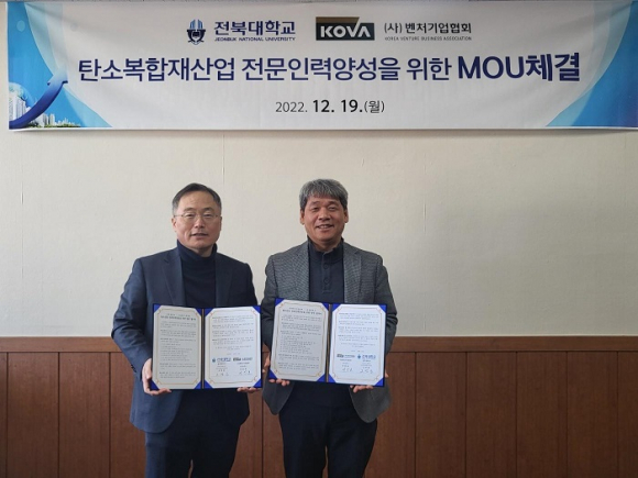 | 전북대학교(총장 김동원)는 (사)벤처기업협회 전북협회와 탄소복합재 분야 산학협력과 전문인력 양성을 위한 업무협약을 체결했다고 19일 밝혔다.
