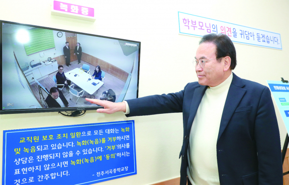 도교육청은 지난 4월 전국 최초로 학생과 교직원 모두의 인권을 보호하는 내용의 전북교육인권조례를 제정했다. 교권과 학생인권의 균형과 조화를 위해서였다. 이 조례를 근거로 기존의 학생인권센터가 전북교육인권센터로 조직과 기능이 확대 개편됐다. 교육인권센터에는 교육활동보호팀이 설치돼 교권침해 조사와 구제, 지원 등의 업무를 맡고 있다. 도교육청은 서이초 교사의 안타까운 희생으로 교권 회복이 교육계 최대 이슈가 된 8월에는 교원들이 학교 현장에서 안심하고 학생들을 가르치는 여건을 조성하겠다며 ‘교육활동 보호 종합대책’을 수립했다. 종합대책에는 악성 민원으로부터 교원을 보호하는 대책들이 다수 포함돼 교육 현장에 반영됐다. 학교당 3대 이상의 전화기에 녹음장치가 설치됐고, 학부모가 학교를 방문하려면 누리집을 통해 예약해야 한다. 녹화·녹음 장치와 비상벨이 설치된 민원상담실도 생겼고, 교원의 휴대전화 번호를 학생이나 보호자가 알 수 없도록 하는 안심번호 서비스도 전면 확대됐다. 악성 민원 등에 대한 총괄 책임을 학교장이 지도록 하는 민원처리 학교장 책임제도 도입됐다. 악성 민원 대책 외에도 △피해 교원 온라인 심리검사 △학부모 리더그룹 대상 교육활동 보호 교육 △교육활동 보호 공동 캠페인 개최 △‘중대교권침해 지원단’ 구성 △‘교육활동 보호 강사단’과 ‘교육활동 회복 멘토단’ 구성 △교육활동 보호 법률지원단 구성 등 다양한 사업들이 시행 중이다. 교원 치유 중점학교 운영, 학생 대상 책임 교육 강화, 학교안전공제회 가입으로 보장 확대, 자치법규 및 관련 규정 개정 추진 등 나머지 사업들도 곧 시행될 예정이다. 도교육청은 학생인권조례 개정에도 나섰다. ‘학생이 학생의 권리에 따른 의무와 책임을 인식하고 다른 학생의 학습권과 교원의 정당한 교육활동을 존중해야 한다’는 내용을 새로 담아 입법예고까지 마쳤다. 학생인권조례 폐지는 검토하지 않고 있다.