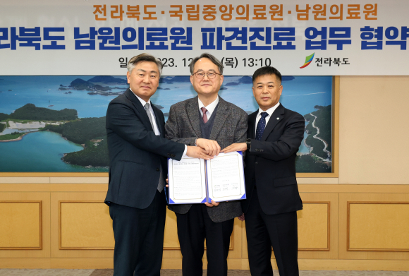 전라북도 남원의료원에 국립중앙의료원 의료진이 파견돼 진료가 이뤄지게 돼 동부권 지역 주민들의 의료서비스 향상이 기대된다. 전북도는 28일 도청 회의실에서 김관영 도지사와 주영수 국립중앙의료원장, 오진규 남원의료원장 등이 참석한 가운데 ‘전라북도 남원의료원에 파견진료를 하기 위한 업무 협약’을 체결했다고 밝혔다. 이번 협약은 지난 ‘22년 공공병원인 남원의료원 등 전북 도내 공공의료의 발전을 꾀하기 위해 국립중앙의료원과 지방의료원과의 협력체계를 구축, 공공의료 성공모델을 발굴함으로써 지역 간 의료 불균형을 해소하자며 맺은 ‘전라북도 공공의료 발전 협약’의 결실이다. 이날 협약은 전국 최초로 지역내 필수의료 제공을 위해 국립중앙의료원 의사를 파견 진료하는 것으로 안과와 감염내과 2개 과이며, 매주 1회 진료가 이뤄질 예정이다. 남원의료원은 그동안 진료과목 중 안과는 지난해부터 휴진해 의사 구인에 어려움을 겪고 있었으며, 감염내과는 코로나19 이후로 수요가 지속적으로 증가 하고 있는 상황이다. 이 협약에 따라 남원의료원은 오는 2024년 1월 부터 매주 1회 국립중앙의료원 소속 전문의가 안과를 시작으로 2월에는 감염내과를 추가 진료개시 할 계획이다. 도는 이번 국립중앙의료원 의사 파견진료 사업으로 지역주민들이 가까운 곳에서 질 높은 의료서비스와 함께 시간과 비용을 절감할 수 있는 혜택을 누릴 수 있게 돼, 동부권 지역 주민들의 건강 보호와 효율적인 진료에 크게 기여할 것으로 기대하고 있다. 김관영 도지사는 “국립중앙의료원 의사가 지방의료원에 파견진료를 하는 것은 전국 최초로 시행하는 시범사업이다. 지역주민에게 필수의료를 제공할 수 있어 더욱 특별한 의미가 있다”며, “남원의료원이 동부권 유일한 종합병원으로서 지역거점공공병원의 역할을 충실히 수행할 수 있도록 노력해 나가겠다”고 말했다. 김 지사는 또, “남원의료원을 성공 모델로 군산의료원, 진안의료원까지 확대해 도민들이 안전하고 질 높은 의료서비스를 제공받고 의료공백이 생기지 않도록 최선을 다하겠다”고 덧붙였다./송효철 기자[주)전라매일신문=전라매일관리자기자] |