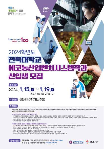 부안, 전북대 에코농산업벤처시스템학과 신입생 모집