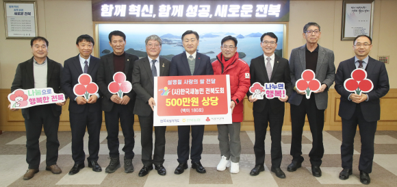 (사)한국새농민 전라북도회(회장 이기성)가 ‘설’ 명절을 맞아 어려움을 겪고 있는 이웃을 돕기 위해 500만 원 상당의 쌀(백미) 180포를 전북특별자치도에 기탁해 왔다. 한국새농민 전라북도회는 추운 겨울 날씨로 인해 힘들어 하고 있는 우리 이웃들이 따뜻한 쌀밥 한그릇으로 세상의 온정을 느꼈으면 좋겠다며 회원들의 따뜻한 마음을 담아 나눔쌀을 모았다. 기부된 쌀은 전북사회복지공동모금회를 통해 기초생활수급자, 차상위계층, 홀몸어르신, 장애인가구 등에게 전달될 예정이다. 김관영 전북특별자치도지사는 “지속적으로 저소득층과 소외계층에 많은 관심과 나눔활동을 펼쳐 오고 있는 한국새농민 전라북도회 회원들과 이기성 회장님께 감사드린다”며 “이번 쌀(백미) 나눔행사가 우리 이웃들에게 전달돼 따뜻한 겨울나기에 도움이 되길 바란다”고 말했다. 한편, (사)한국새농민 전라북도회는 도내 어려운 이웃들을 위해 2015년부터 10년째 사랑의 쌀 나눔행사를 이어오고 있다. |