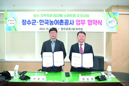 전라북도 동부권 미래 농업 중심이 될 장수군 임대형 스마트팜 조성이 첫발을 내딛었다. 장수군은 지속 가능한 미래 농업 실현을 위해 전라북도 스마트팜을 가장 앞서 이끌어가고 있다. 올해 장수읍 두산리 일원에 4ha 규모의 스마트팜 부지를 선정한 후 착공을 시작했으며, 지난 11월에는 임대형 스마트팜 기본계획과 타당성 조사용역 최종보고회를 마무리하고 사업을 차질없이 추진해 나가고 있다. 군은 내년도에 1단계 사업으로 청년 농업인 임대 스마트팜 조성을 완료하고, 2025년에는 2단계 사업을 지역특화형 임대 스마트팜 조성을 완료해 8ha 규모의 임대형 스마트팜을 조성할 계획이다.