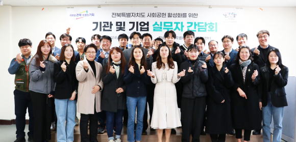 (사)전북특별자치도자원봉사센터(이사장 고영호)는 6일 전북특별자치도자원봉사센터 교육장에서 도내 18개 기관 및 기업 실무자들이 한자리에 모여 도내 사회공헌 지원과 활성화를 위한 실무자 간담회를 개최했다. 이번 간담회는 도내 사회공헌 지원과 활성화를 위한 모임으로, 사회공헌 활동 추진 현황과 도자원봉사센터 주요 사회공헌 프로그램 공유 및 2024년 사회공헌 활성화 방안을 모색하는 자리로 마련됐다. 전북특별자치도자원봉사센터 박정석 센터장은 “기관과 기업 사회공헌 참여는 전문적 지식을 바탕으로 수혜자의 만족도도 상당히 높고 효과도 즉각적으로 나타나기 때문에 중요한 재원임을 알수 있다. 앞으로도 다양한 사회공헌 자원을 발굴하여 사회적 재분배를 이끌어 나가겠다.”라고 말했다. 아울러 “새로운 전북, 특별한 기회라는 슬로건 아래, 사회공헌 활동의 활성화와 도민들의 삶의 질 향상에 기여하고, 지역사회 문제 해결에 더욱 적극적으로 나서서 지역사회와 함께 나아가는 파트너로서의 역할을 충실히 수행 하겠다”고 강조했다.