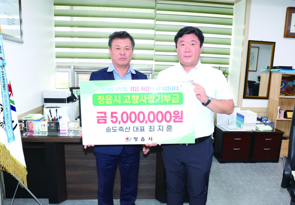 송도축산 최지훈 대표, 정읍에 고향사랑기부금 500만원 기탁