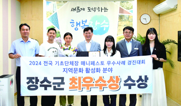 전북특별자치도 장수군이 2024년 전국 기초단체장 매니페스토 우수사례 경진대회에서 ‘최우수상’을 수상했다. 이로써 장수군은 매니페스토 경진대회에서 지난해에 이어 2년 연속 최우수상을 수상하는 영예를 안았다.. 매니페스토 우수사례 경진대회는 전국 지자체의 우수공약 사례를 발굴‧확산하기 위해 2007년부터 사단법인 한국매니페스토실천본부에서 개최하고 있다. ‘다시 쓰는 지방자치, 리질리언스’를 주제로 열린 올해 경진대회에는 전국 148개 기초지자체에서 △일자리 및 고용환경 개선 △사회적 불평등 완화 △경제적 불평등 완화 △인구구조 변화 대응 △기후환경·생태 △지역문화 활성화 △공동체 강화 총 7개 분야 353개의 사례가 공모해 치열한 경쟁이 펼쳐졌다. 장수군은 이번 대회에서 지역문화 활성화 분야에 ‘청년들이 만들어가는 새로운 로컬브랜드, 장수트레일레이스’라는 주제로 응모했고 최우수상을 수상했다. 이로써 군은 지난해 불평등 완화 분야에 ‘꿈찾아 장수로! 꿈키워 세계로!’를 주제로 참가해 최우수상을 받은 데 이어 2년 연속 수상했다. 최 군수는 “지난 4월 매니페스토 공약이행평가 최우수(SA)등급 선정에 이어 이번 경진대회에서도 장수군의 정책이 최우수상을 수상하게 되어 매우 기쁘다”며 “민선8기 3년차를 시작하는 시점에서 앞으로도 군민들의 생생한 현장 목소리를 경청하고 정책에 반영하여 장수군의 혁신적인 변화를 위해 노력하겠다”고 말했다. |