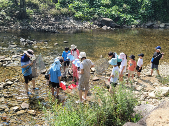 장수군은 24일 지역 어린이 23명을 대상으로 방화동자연휴양림 일원에서 어린이 생태교실 3회차를 진행했다고 밝혔다. 이번 생태교실은 ‘방화동 물길따라 걷기’를 주제로 물속에 사는 곤충과 식물을 채집하고 관찰하며 어린이들에게 자연의 중요성을 알리고 생태 감수성을 키우는 시간으로 마련됐다. 장수군 어린이와 초등학생을 대상으로 운영되는 ‘2024년 어린이 생태교실’은 총 5회차로 구성되며, 뜬봉샘 생태자원 관찰 및 조사를 통해 자연과 깊이 교감하고 자연 친화적인 삶의 태도를 배우는 것을 목적으로 하고 있다. 한편, 오는 9월(4회차)에는 ‘가을 숲 산책, 즐거운 생태놀이’, 10월(5회차)에는 ‘뜬봉샘 숲 산책, 숲에서 상상하는 미래의 나’를 주제로 어린이 생태교실이 운영될 계획이다.