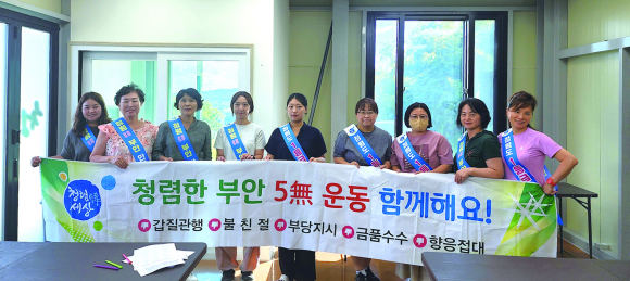 부안군 교육청소년과는 지난 28일 청우공방에서 모두배움터 프로그램 매니저 10여명이 참여한 가운데 청렴 문화 확산 캠페인을 실시했다. 모두배움터 프로그램 및 수강생 출결관리 등을 담당하는 매니저들은 이번 캠페인에서 청렴한 부안군을 만들기 위한 5無(갑질행정, 불친절, 부당지시, 금품수수, 향응접대) 운동을 모두배움터 회원 및 지역주민들에게 확산시키고 자리 잡을 수 있도록 다짐하는 시간을 가졌다. 손연희 모두배움터 매니저 대표는 “청렴한 부안을 만들기 위해서는 지역주민들이 적극적으로 참여하고 의견을 내야 한다”며 모두배움터 회원들의 청렴 문화 실천을 독려하고 다양한 실행방안에 대해 논의했다. 최정애 교육청소년과장은 “주민들과 지속적인 소통을 통해 공정과 청렴의 가치를 공유하고 이를 바탕으로 수준 높은 도덕성을 갖춘 부안군을 만들어 신뢰받는 행정을 구현하겠다”고 말했다. |