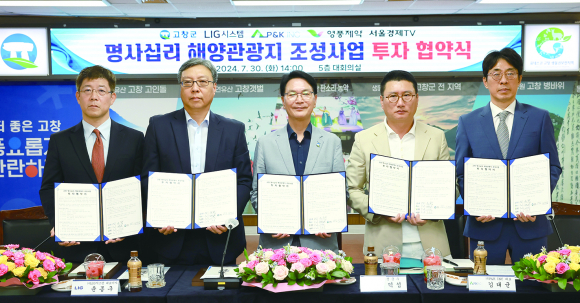 지난 7월30일 고창군청 대회의실에서 국내 기업 4곳((주)LIG시스템, ㈜P&K INC, 영풍제약, 서울경제TV)과 3000억원 상당의 ‘명사십리 해양관광지 조성사업 투자협약식’이 열렸다. 협약식에는 심덕섭 고창군수, (주)LIG시스템 윤종구 대표, P&K INC 김태균 대표, ㈜영풍제약 김재훈 대표, 서울경제TV 홍준석 부사장 등 30여명이 참석했다. 각 업체들은 2030년까지 3000억원을 투자해 고창 명사십리 일대에 리조트와 숙박, 스포츠, 휴양·레져시설을 조성할 계획이다. 군은 연말까지 타당성 용역을 마무리하고, 내년도에 관광지 지정과 조성계획 용역을 본격 추진해 2026년 상반기 본격적인 개발에 착수할 방침이다. 명사십리에 대규모 해양관광지가 조성되면, 관광객 유치는 물론 스쳐 지나가는 관광이 아닌 체류형 관광지로의 대변신하게 된다. 명사십리 관광개발은 지역의 숙원사업이었다. 명사십리 부지에 국유재산이 일부 포함돼 상업적으로 이용하거나 관광산업을 하는데 제한이 많았기 때문. 이에 심덕섭 고창군수는 기획재정부 등을 찾아 국유재산 매각을 요청했고, 최근 긍정적인 답변을 주면서 이번 관광투자 협약이 일사천리로 진행될 수 있었다.