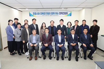 정읍시와 전북특별자치도 싱크탱크인 전북연구원은 지난 5일 정읍시청 중회의실에서 송금현 부시장과 이남호 전북연구원장 등 관계자들이 참석한 가운데 정책 간담회를 열고, 시가 추진 중인 현안 사업과 신규 사업의 추진 방향을 논의했다. 이번 간담회에서는 시가 중점적으로 추진하고자 하는 4가지 주요 사업이 안건으로 다뤄졌다. 논의된 사업은 ▲정읍 구절초 꽃축제 발전방안 ▲내장저수지 국가생태탐방로 조성 ▲반려동물 복합문화센터 신축 ▲정읍형 치유농업 클러스터 조성 등이다. 이들 사업에 대한 정책 논리를 점검하고 실행 가능성을 높이기 위한 방안이 중점적으로 논의됐다. 송금현 부시장은 “전북연구원과의 협력을 통해 시는 다양한 공모사업에 선정되는 성과를 거뒀다”며 “앞으로도 지역의 현안과 숙원사업 실현을 위해 긴밀한 협력을 이어가겠다”고 말했다. 이남호 전북연구원장은 “‘혁명의 도시 정읍’의 역사적 위상에 걸맞은 미래를 함께 논의할 수 있어 뜻깊다”며 “전북연구원도 정읍 발전에 든든한 동반자가 되겠다”고 밝혔다. 시는 이번 간담회를 계기로 전북연구원과의 소통과 협력을 강화해 민선 8기 후반기에 성공적인 정책 추진을 위한 동행을 이어갈 계획이다.