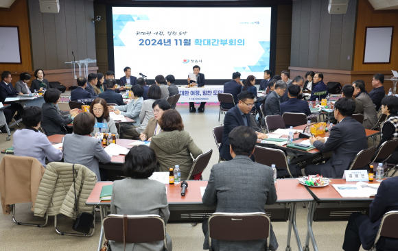 정읍시가 연말을 맞아 62개 주요 현안을 점검하고, 내년 도약을 위한 계획 수립에 나섰다. 이번 확대간부회의는 자유로운 논의를 통해 문제 해결 방안을 모색하고 시민 편의를 강화하기 위한 다양한 아이디어를 공유하는 자리였다. 시는 지난달 29일, 실과소장과 읍면동장이 참석한 가운데 확대간부회의를 열고 2025년을 준비하기 위한 현안 점검과 소통의 시간을 가졌다. 회의는 자유롭고 창의적인 분위기를 조성하기 위해 ‘밀착’형 좌석 배치로 진행됐으며 ▲2025년 일자리 창출 지원 ▲정읍체육트레이닝센터 운영관리 ▲(구)상공회의소 리모델링 정읍사회복지관 확대 운영 ▲농식품부 농촌협약 공모사업 추진 ▲당현마을~체육공원 연결도로 개설 ▲동절기 설해대책 추진 등 62개 사업이 논의됐다. 이학수 시장은 “공모사업 신청 시 우리 시에 꼭 필요한지 정책적으로 심도 있게 검토하고 예산절감을 위해 용역도 꼭 필요한 경우에만 실시해야 한다”고 강조했다. 또한 “공용 목적을 상실한 공유재산은 신속히 용도폐지 후 효율적으로 관리하고, 주요 도로 재굴착 문제를 방지해 시민 불편을 최소화해야 한다”고 당부했다. 마지막으로 이 시장은 “올 한 해 고생 많았다”며 “연말연시 공직기강을 철저히 준수하고, 세밀한 업무 추진을 통해 2025년이 정읍의 위대한 도약의 해가 될 수 있도록 함께 노력하자”고 말했다. |