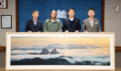 40년이 넘는 긴 세월 동안 진안 마이산만을 촬영해 온 정길웅(57세) 작가가 진안군에 사진을 기증했다. 5일 군수실에서는 정 작가가 덕태산에서 바라본 마이산의 운해를 담은 파노라마 사진 등 총 2점을 전달하는 기탁식이 열렸다. 기탁식에서 정길웅 작가는 “진안군의 대표 명소인 마이산을 진안 내외의 많은 사람들과 함께 보면 좋겠다는 마음이 들어 기탁을 하게 됐다”며 “지금도 잘 알려져 있지만 전 세계 사람들이 찾아오는 명산으로서 빛날 수 있도록 앞으로도 계속해서 마이산의 또 다른 매력을 찾아 사진 촬영에 매진할 계획”이라고 밝혔다. 이에 전춘성 군수는 “긴 세월 동안 마이산만을 생각하며 촬영한 작가님의 장인 정신에 감명받았다”며 “군에서도 마이산을 더 많은 사람들이 찾을 수 있도록 다양한 노력을 아끼지 않겠다”고 말했다. 군은 이 날 기탁받은 사진 작품을 청사 내에 전시할 계획이다. |