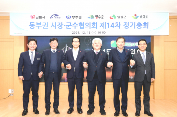 전북특별자치도 동부권시장군수협의회(남원, 진안, 무주, 장수, 임실, 순창) 제14차 정기총회가 지난 18일 무주군청 대회의실에서 개최됐다. 이날 총회는 제9기 동부권 시장군수협의회장 선출을 비롯해 각 지역 정보 및 협력 사항을 공유하고 발전 방안을 논의하기 위해 마련된 것으로, 황인홍 무주군수와 최경식 남원시장, 전춘성 진안군수, 최훈식 장수군수, 설상희 임실부군수, 염기남 순창부군수를 비롯한 각 시군 관계자 등 40여 명이 참석해 의미를 더했다. 8기에 이어 9기 협의회장을 연임하게 된 황인홍 무주군수는 “동부권 각 지역이 역량을 모아 다양한 분야에서 존재감을 나타내고 있다는데 자부심을 느낀다”라며 “인구감소와 기후변화, 지방소멸위기 등 동부권이 직면해 있는 현실적인 문제와 각 지역이 안고 있는 문제들을 해결하고 발전을 도모해 나가는데 역량을 쏟을 것”이라고 밝혔다. 한편, 이 자리에서는 국가균형발전 및 지방소멸위기 대응을 위해 추진 중인 제2중앙경찰학교 후보지 공모에서 영호남 지역 유일의 최종후보지로 선정된 남원시가 ‘최종 부지’ 선정을 위해 동부권 시군의 협력을 요청했으며 무주군은 ‘고압 송변전 시설 설치’와 관련해 공동 대응을 건의했다. /무주=김정오 기자 |