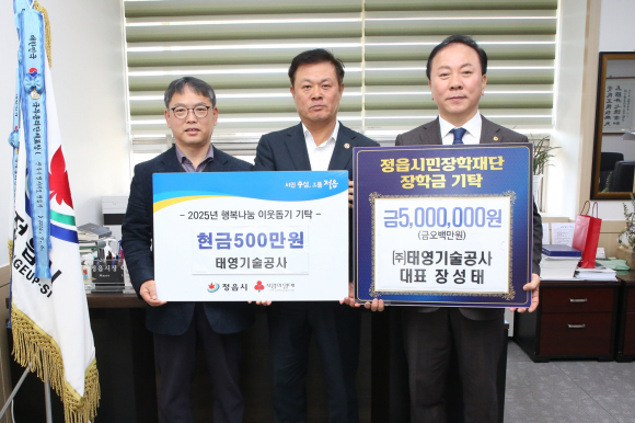 시는 지난 17일 ㈜태영기술공사 장성태 대표가 500만원, 현정어린이집 교사회가 100만 원을 정읍시민장학재단에 기탁했다고 밝혔다.