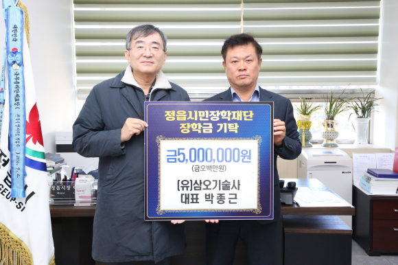 정읍시 연지동 소재 삼오기술사 박종근 대표가 지역 인재 육성을 위한 따뜻한 나눔을 실천했다.