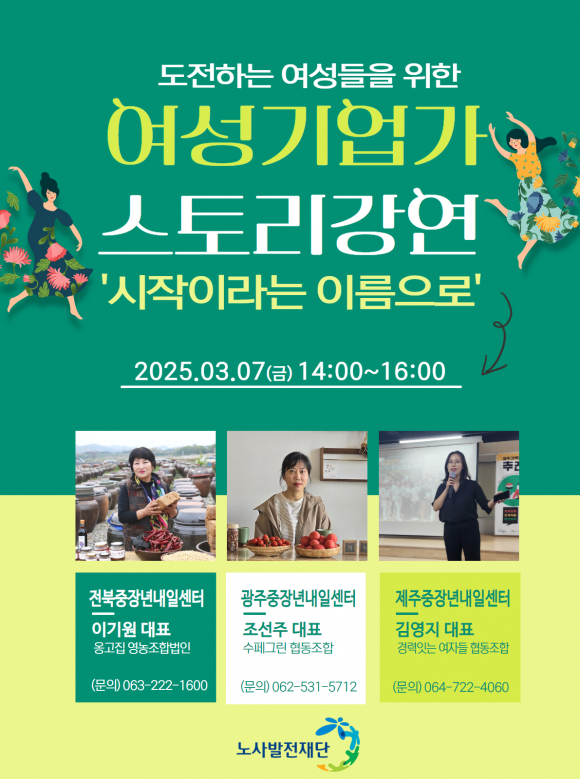 ˝시작이라는 이름으로˝ 중장년 여성 구직자들을 위한 여성 기업가 스토리 강연 개최노사발전재단 호남지사, 3·8 세계여성의날 기념 강연 통해 취·창업 동기부여조경환 기자 / |