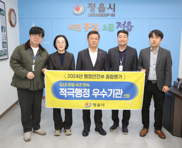 정읍시가 행정안전부 주관 ‘2024년 지방자치단체 적극행정 종합평가’에서 ‘우수기관’에 선정되며 도내에서 유일하게 4년 연속(2020·2022·2023·2024) 우수기관의 자리를 지켰다. (2021년은 코로나19로 인해 별도 평가 안함)