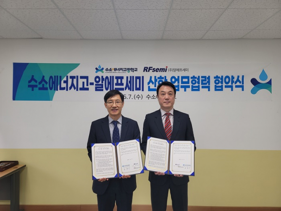 수소에너지고등학교와 알에프세미가 산학협력으로 기업 맞춤형 인재를 양성한다. 완주에 위치한 수소에너지고등학교는 지난 7일 (주)알에프세미와 업무협약을 체결했다. 이 협약은 스마트팩토리 기반 제조 산업 분야 전문 인재 양성과 취업 역량 강화가 목적이다. 협약에 따라 양 기관은 △수소 및 신재생에너지 분야 연 1~5명의 졸업(예정)자 채용 △지역 정주 여건 조성을 위한 교육 협력 △진로 선택을 위한 진로 특강 △기술 교류 및 연구개발 공유(R&De 캡스톤 등) 등에 적극 협력키로 했다. 1999년 설립된 반도체 전문 기업으로 완주에 본사를 두고 있는 알에프세미는 휴대전화 마이크에 사용되는 핵심 부품인 ECM칩 제조 분야에서 세계 시장 점유율 60% 이상을 차지하고 있는 글로벌 선도 기업이다. 주로 마이크용 반도체 부품을 생산하고 있으며, 최근에는 LED 조명용 반도체 분야로 사업 영역을 확대하고 있다. 특히 기존 완주산단의 반도체 산업군과 학교의 스마트팩토리 기반 교육과정이 맞물려 현장 맞춤형 인재를 양성하는 효과가 있을 것으로 기대된다. 송현진 교장은 "알에프세미는 반도체와 이차전지 사업을 주력하는 우리 지역의 대표 우수기업”이라며 “이번 협약을 통해 우리학교 학생들은 다양한 취업 기회를 얻고, 지역정주의 꿈을 이룰 수 있을 것” 이라고 말했다. |