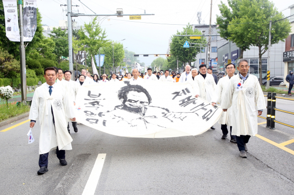 ‘동학농민혁명, 억압에서 피어난 불꽃’을 주제로 열린 올해 기념제는 15년 만에 정읍 도심인 정읍천 어린이축구장과 시내 일원으로 자리를 옮겨 개최돼 시민들의 접근성을 높였다. 이번 기념제는 단순한 과거 재현을 넘어, 동학농민혁명의 전국화와 세계화를 위한 견고한 토대를 다지는 데 중점을 뒀다는 평가다. 전국의 동학농민혁명 관련 단체가 참여한 것은 물론, 독일 뮐하우젠시 대표단이 함께한 독일농민전쟁 500주년 기념 행렬도 열려 세계 시민들과의 역사적 연대를 이루는 뜻깊은 순간을 만들었다.