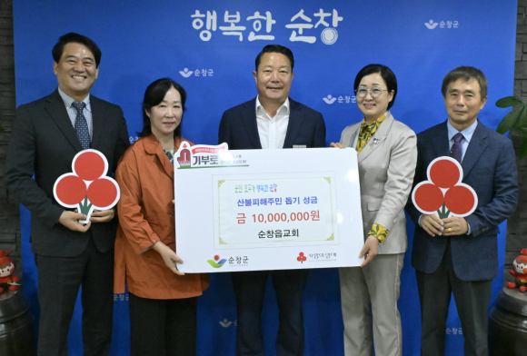 순창읍교회(목사 전성일)는 지난 12일 순창군을 방문해 산불피해 주민과 저소득층 주민을 돕기 위한 성금 1000만원을 기탁했다.