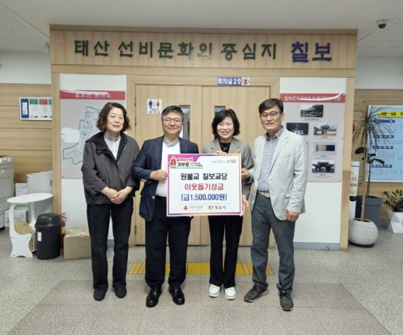 1966년에 설립돼 현재 100여 명의 교도가 함께하고 있는 칠보교당은 지난해에도 120만원을 기탁하는 등, 지속적으로 성금을 전달하며 이웃 사랑을 몸소 실천하고 있다.